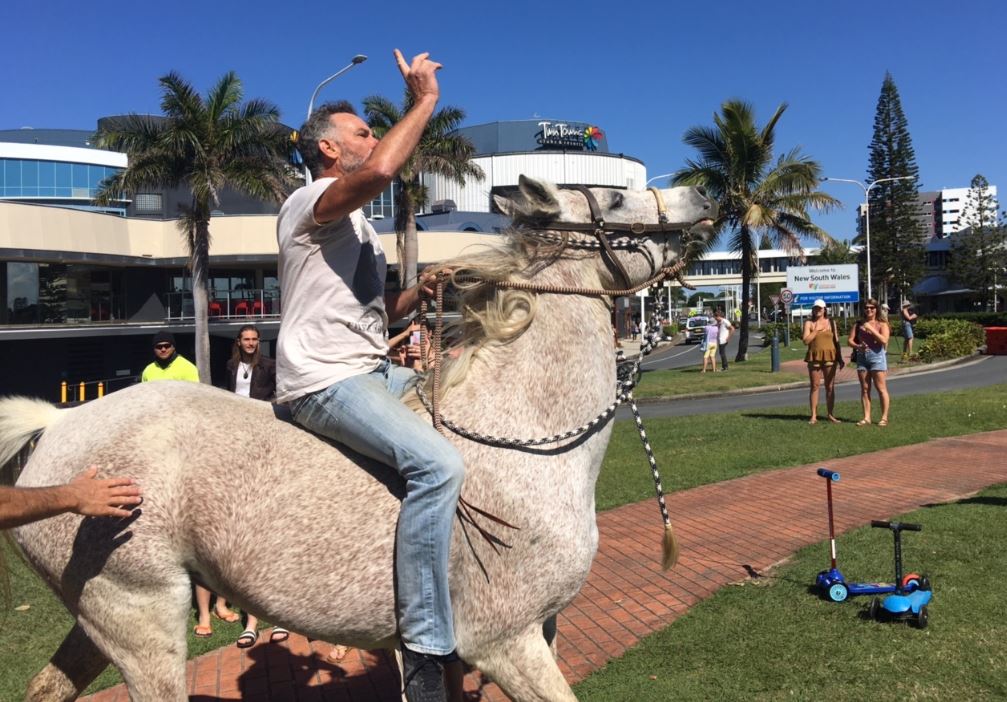 The 52-year-old handed himself into Tweed Heads police on Monday and has been issued a 3000 penalty infringement notice by NSW Police and a 4135 fine by Queensland Police. A protestor at an anti-lockdown protest on the Gold Coast being taken into custody by police. 19 hours agoA movie stuntman who rode a horse in two different lockdown protests says he lost his job after.